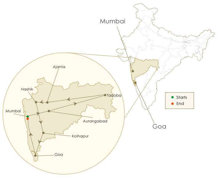 Mumbai – Aurangabad – Tadoba – Ajanta Caves – Nashik – Kolhapur – Goa – Mumbai