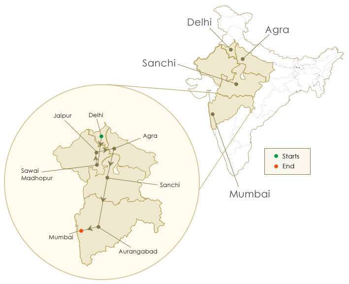 New Delhi – Sawai Madhopur – Jaipur – Agra – Sanchi – Aurangabad – Mumbai