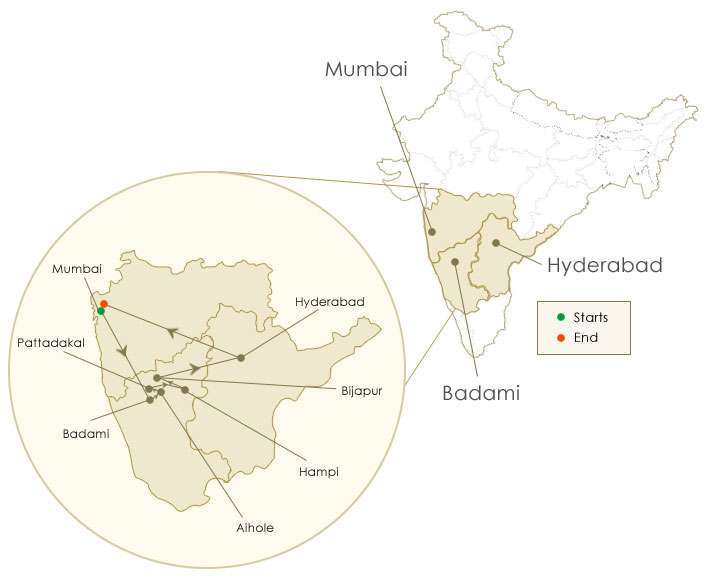 Mumbai – Badami – Aihole – Pattadakal – Hampi – Bijapur – Hyderabad – Mumbai